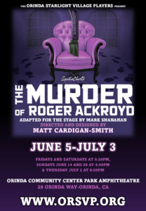 OrSVP will open its 43rd season with the Bay Area premiere of  Agatha Christie’s The Murder of Roger Ackroyd.  This new adaptation, by playwright Mark Shanahan will celebrate the novel’s 100th anniversary from its original publication date. The novel changed the mystery genre forever with its twists and turns and audiences will be taken on a journey that is “to die for!”